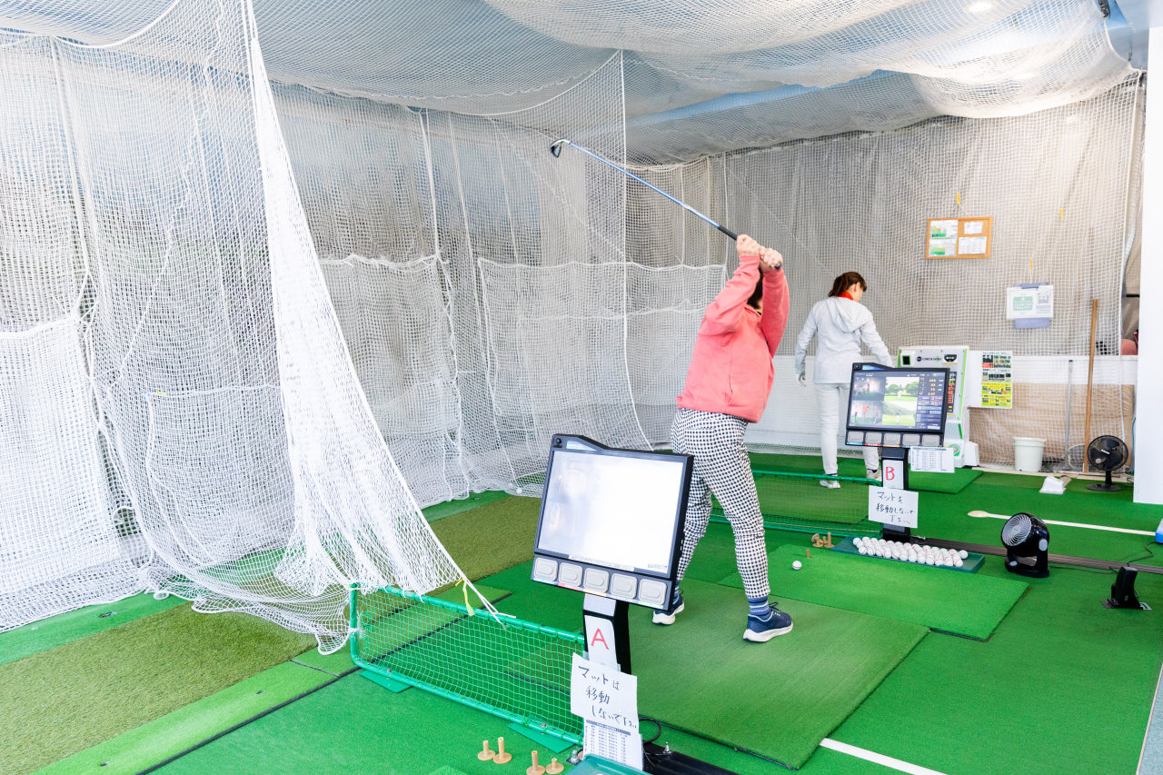屋内ながら3打席を備え、さらにバンカー練習場とパター練習場も完備しています。